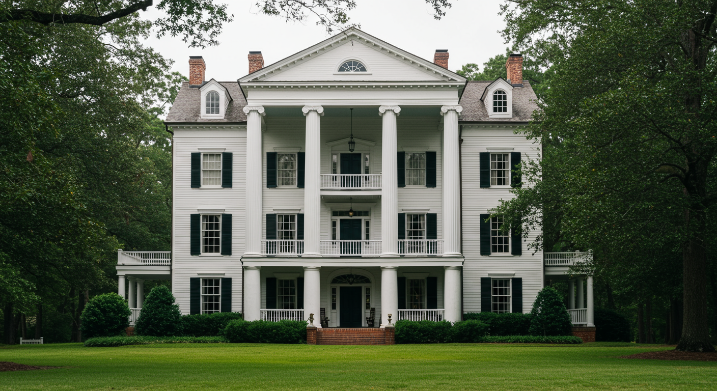 Whitehall was designed by Atlanta architect Kenneth Lynch and completed in 1988. Over the last 20 years, the estate has come to embody the myth of the Old South for Atlantans and out-of-towners. In fact, Lynch was commissioned to design a house with many of the qualities found at Oak Alley, the antebellum classic in Louisiana. The mansion sits atop a hill on more than five acres overlooking Harris Trail at the intersection with Northside Drive and is most recognizable for its 28 Doric-style columns that soar 25 feet high and support wide upper and lower-level verandas.
