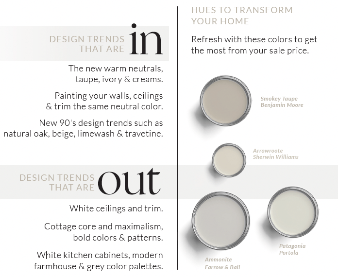 Interior design trends for 2025 focus on sustainable luxury, blending eco-friendly materials like reclaimed wood, natural stone, and recycled metals with high-end finishes to create timeless and environmentally conscious spaces. Bold organic forms take center stage, with curved furniture, sculptural lighting, and biomorphic patterns. Here's what we can expect from elevated design in 2025 and what to avoid to get the most from your home when marketing it to sell.