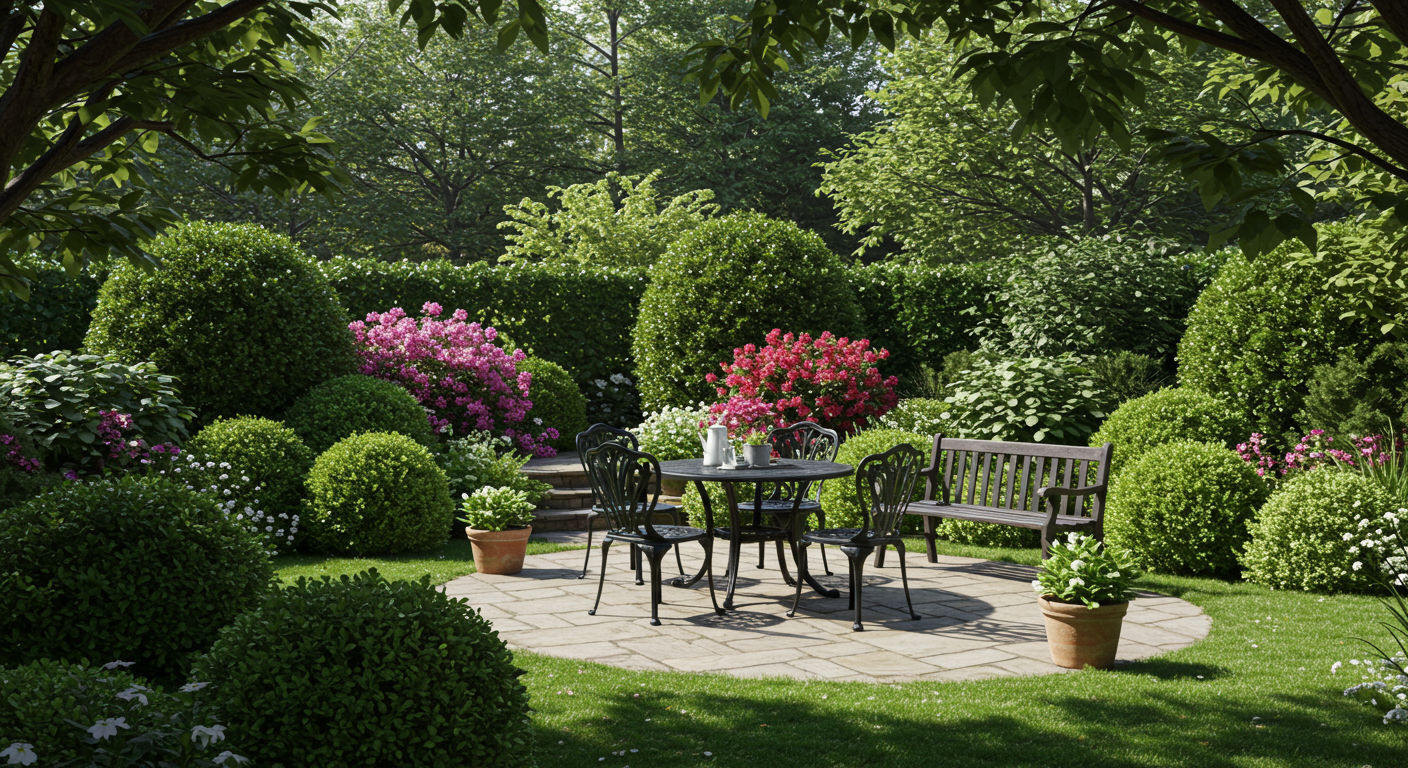 A rear garden courtyard with a slate patio and lattice details offers a lovely backdrop for entertaining friends under the expansive hardwood canopy. Beyond the garden courtyard is an upper level of evergreen trees perfect for a future pool or a tennis court. A charming detached 2-car garage, designed to attractively compliment the home’s cottage-style architecture could easily be expanded to create a carriage house for guests, teenage recreation, or to serve as a pool house.